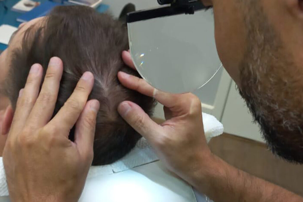 Exame realizado no couro cabeludo, indolor e não invasivo, aumenta a visão, permitindo uma avaliação microscópica do couro cabeludo e haste capilar