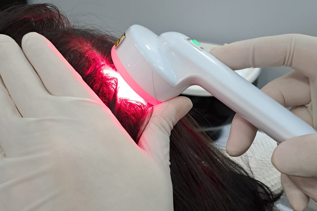 Microinjeções de medicamentos no couro cabeludo com o objetivo de fortalecer os fios.